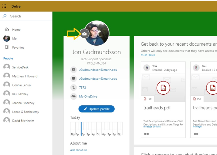 4. Click on the camera icon above your name.