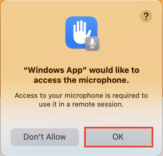 Another window will pop up. This window is the system requesting permission for Windows App to access your Microphone. Click OK.