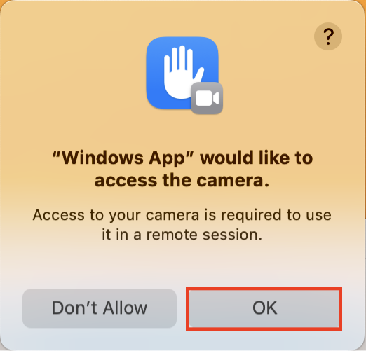 Another window will pop up. This window is the system requesting permission for Windows App to access your camera. Click OK.