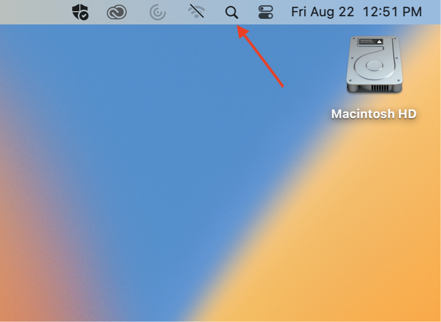 - Click on the magnifying glass in the top right-hand corner of the desktop, near the clock.